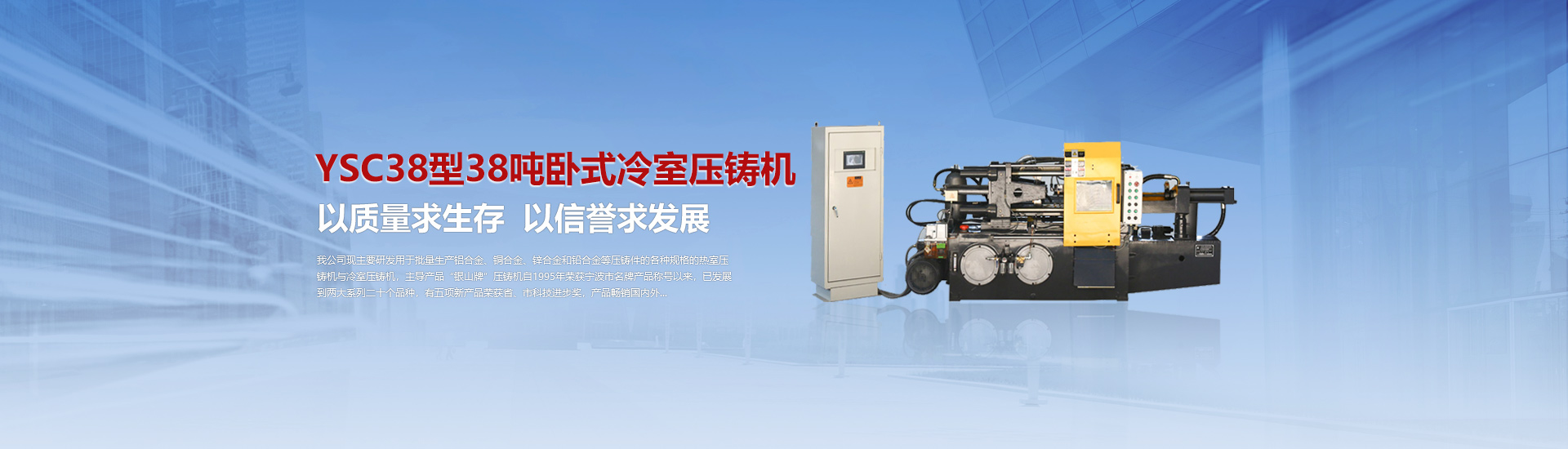 我司現(xiàn)主要研發(fā)用于批量加工生產(chǎn)鋁合金、銅合金、鋅合金和鉛合金等壓鑄件的各種型號規(guī)格的熱室/冷室壓鑄機(jī),主導(dǎo)產(chǎn)品“銀山牌”壓鑄機(jī)自1995年榮獲寧波市名牌產(chǎn)品稱號以來,已發(fā)展到兩大系列二十個(gè)品種,有五項(xiàng)產(chǎn)品曾榮獲省、市科技進(jìn)步獎(jiǎng),產(chǎn)品暢銷國內(nèi)外。歷年來向用戶提供了8000余臺設(shè)備,為中國的壓鑄工業(yè)發(fā)展作出了重要的貢獻(xiàn),企業(yè)獲得了很高的信譽(yù)度。